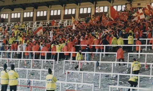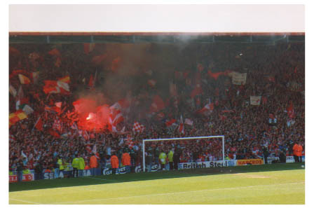 I was decked out in red, of course and I carried a heavy wooden rattle which would be classed as a dangerous object in 1994. Once inside the Boys' Pen, I remember staring in bewilderment at the thousands who congregated under that famous roof. Their feelings for Liverpool were ultimate and their humour was unbeatable.