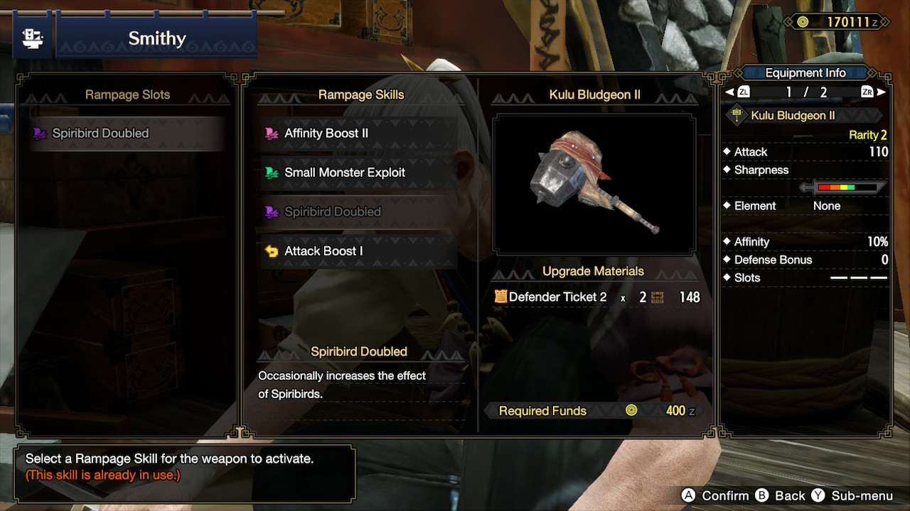 พอมาอัพเป็นค้อน Kulu ผมเปลี่ยนเป็นเป็น Spiritbird double ไอ้ Atk boost I ของเก่ามันเลยไปขึ้นตรงลูกศร Rolback เป็นช่องที่ 4