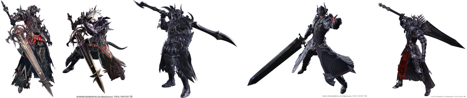 - Dark Knight เป็นจ็อบที่ดัดแปลงจาก Dark Knight ในซีรีส์โดยเฉพาะอย่างยิ่ง FF4 และ FFT โดยเปลี่ยนมาใช้ MP เพื่อแสดงถึงพลังด้านมืดที่บั่นทอนจิตใจแทน HP เพื่อให้เหมาะสมกับเมคานิคของเกมและการเป็นแทงค์ใน FF14
