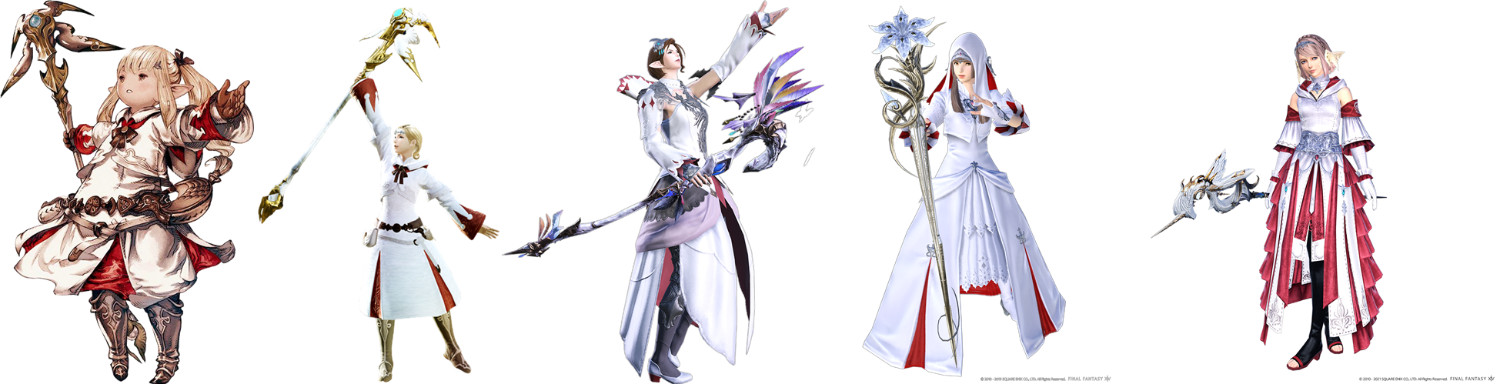 White Mage: WHM ผู้ใช้มนตร์ขาว นักเวทผู้เข้าถึงจิตวิญญาณแห่งธาตุ ผู้เชี่ยวชาญในศาสตร์แห่งการฟื้นฟูและรังสรรค์