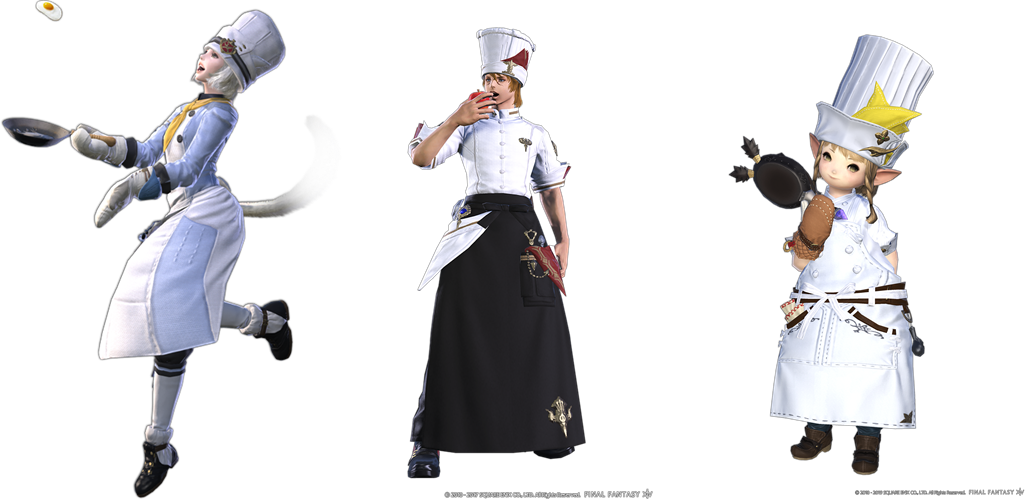 วัตถุดิบหลักที่ใช้ในการสร้างสิ่งของของ Culinarian ได้มาจากหลายแหล่ง เช่น ผักผลไม้ต่างๆ จาก Botanist สัตว์น้ำต่างๆ จาก Fisher เนื้อสัตว์จากการล่า และเครื่องปรุงเช่นเกลือหรือน้ำธรรมชาติจาก Miner Culinarian สามารถใช้วัตถุดิบเหล่านี้สร้างสรรค์อาหารและเครื่องดื่มต่างๆ เพื่อเพิ่มสเตตัสให้กับผู้ใช้ได้ชั่วคราวในช่วงระยะเวลาหนึ่ง ยิ่งอาหารที่ทำมีระดับสูงก็จะยิ่งช่วยเพิ่มขอบเขตสเตตัสให้ได้มากขึ้น มีประโยชน์มากสำหรับการเพิ่มสเตตัสในเวลาที่สเตตัสจากชุดที่สวมใส่ไม่เพียงพอต่อทั้งการเหรด การสร้างของ หรือการเก็บเกี่ยว นอกจากนี้ยังสามารถสร้างอาหารสำหรับเป็นของตกแต่งบ้านได้อีกด้วย