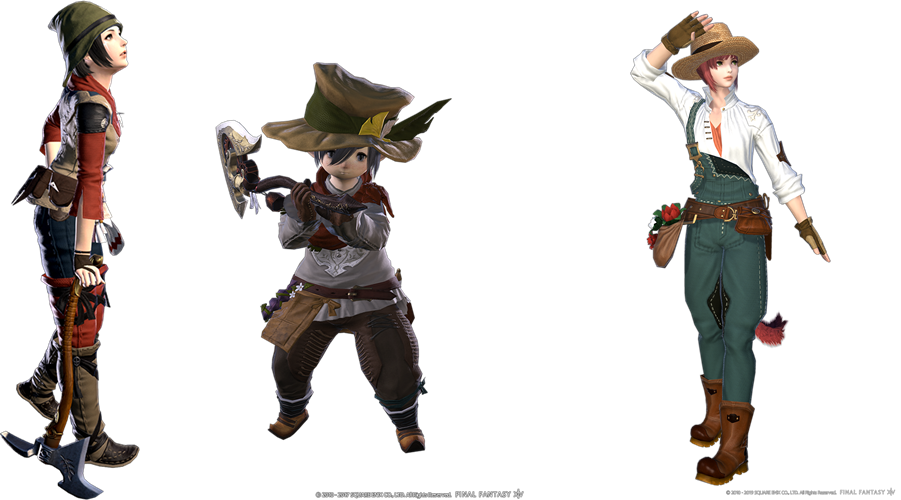 เป็นจ็อบที่สามารถเล่นได้ตั้งแต่เริ่มเกม ตอนสร้างตัวละครจะบังคับให้เลือก 1 คลาสก่อน แต่สามารถเปลี่ยนได้อิสระหลังจากทำเควสต์ประจำคลาสที่เลือกถึงเลเวล 10 จ็อบพวกนี้จะเริ่มจากการเป็นคลาสที่มีชื่อต่างกันซึ่งเป็นมรดกจาก 1.0 แต่ปัจจุบันตั้งแต่ 4.0 เป็นต้นไปถือว่าคลาสเป็นหนึ่งเดียวกับจ็อบแล้ว เมื่ออัพคลาสถึงเลเวล 30 ผู้เล่นก็สามารถทำเควสต์เปลี่ยนเป็นจ็อบได้ต่อเนื่องกันทันที โดย NPC ของคลาสจะส่งผู้เล่นไปหา NPC สำหรับเปลี่ยนจ็อบเองในเควสต์สุดท้าย ไม่สามารถข้ามหรือลัดขั้นตอนไปหา NPC จ็อบเพื่อเปลี่ยนก่อนได้ (และต้องผ่านเควสต์เนื้อเรื่องหลักเลเวล 20 ถึง Sylph-management ก่อน) ซึ่งจ็อบเริ่มต้นจะมีด้วยกัน 10 จ็อบ ดังนี้