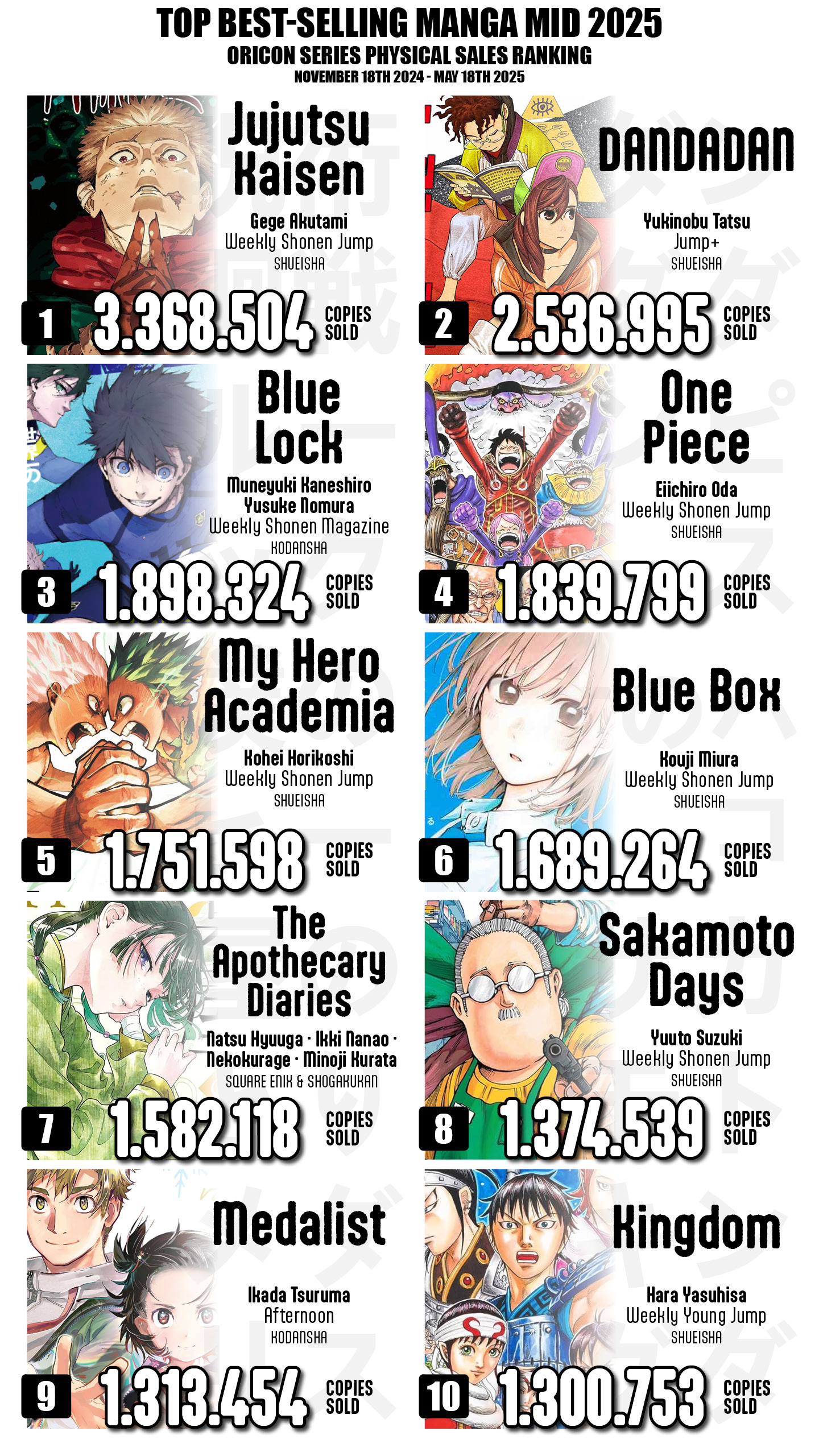 ยอดขายมังงะ Light novel ครึ่งปีแรก JJK เมาเมา รวย