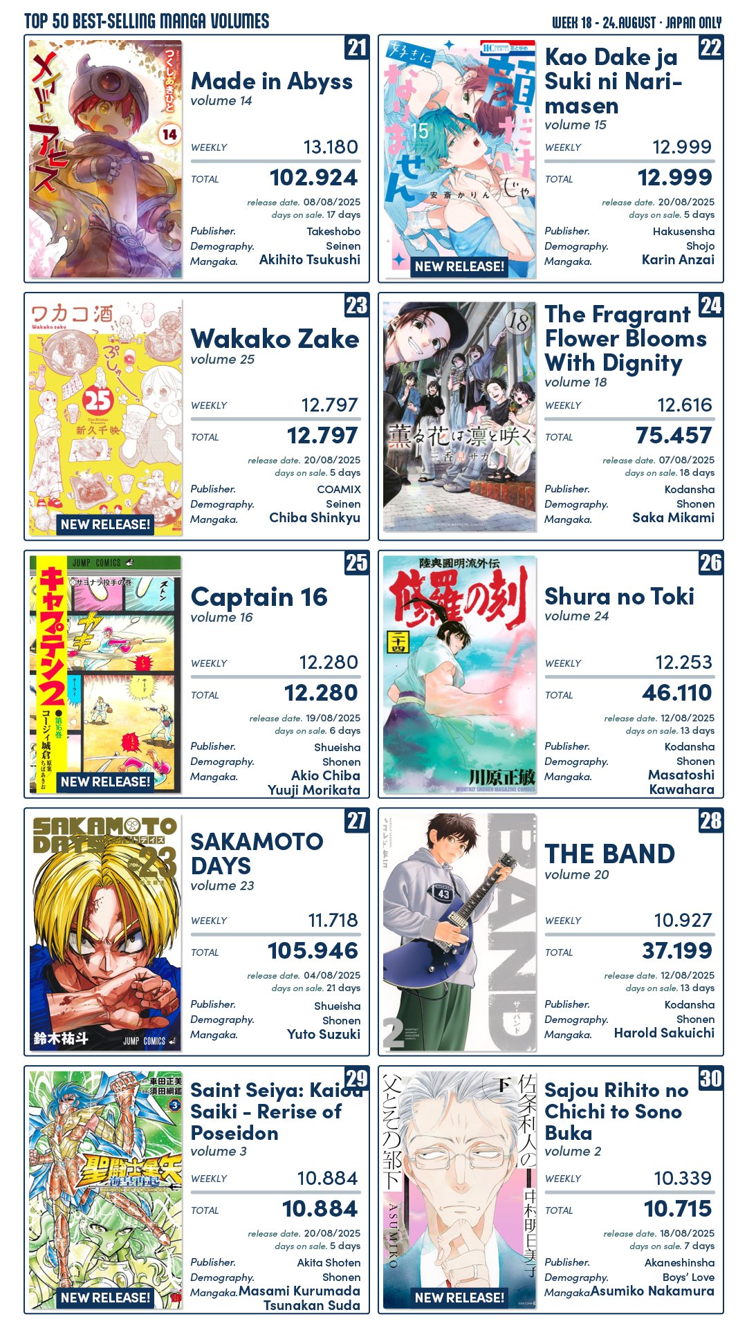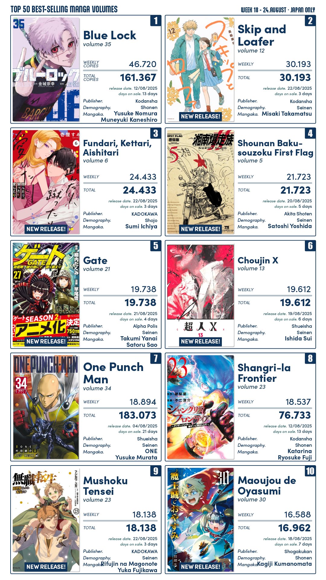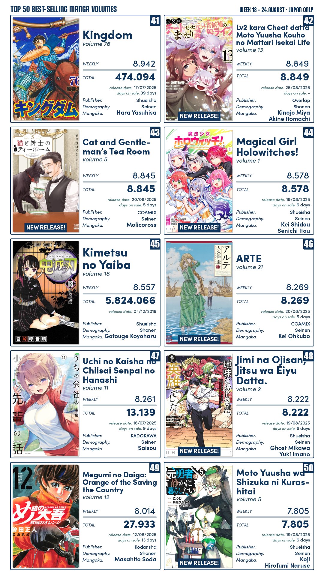 ยอดขาย manga 18 - 24 ส.ค.68 ดาบพิฆาตอสูรกวาดอันดับ 1