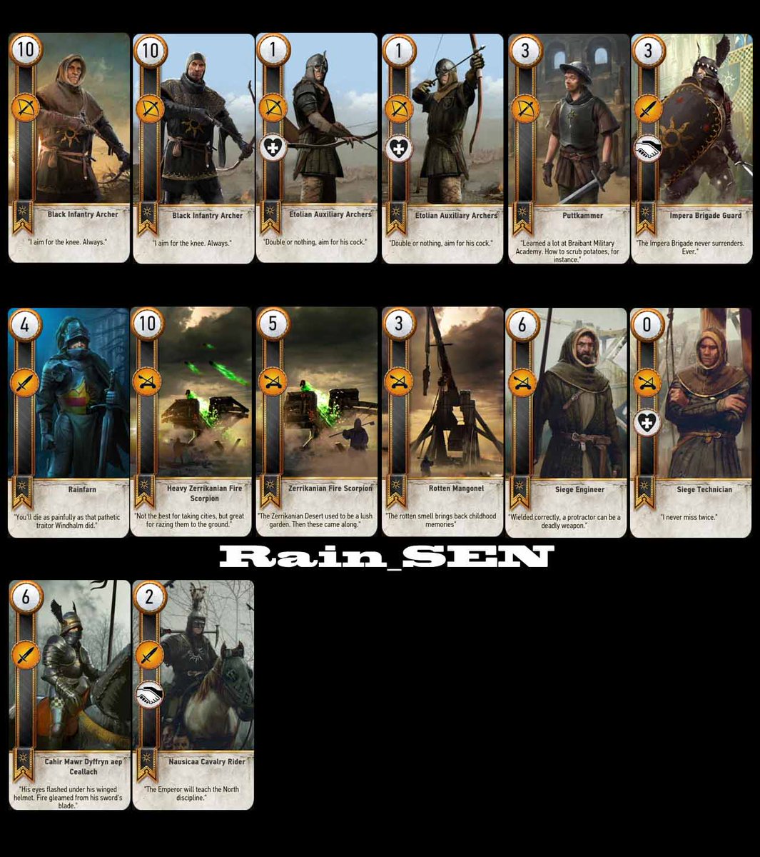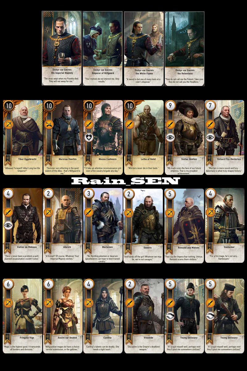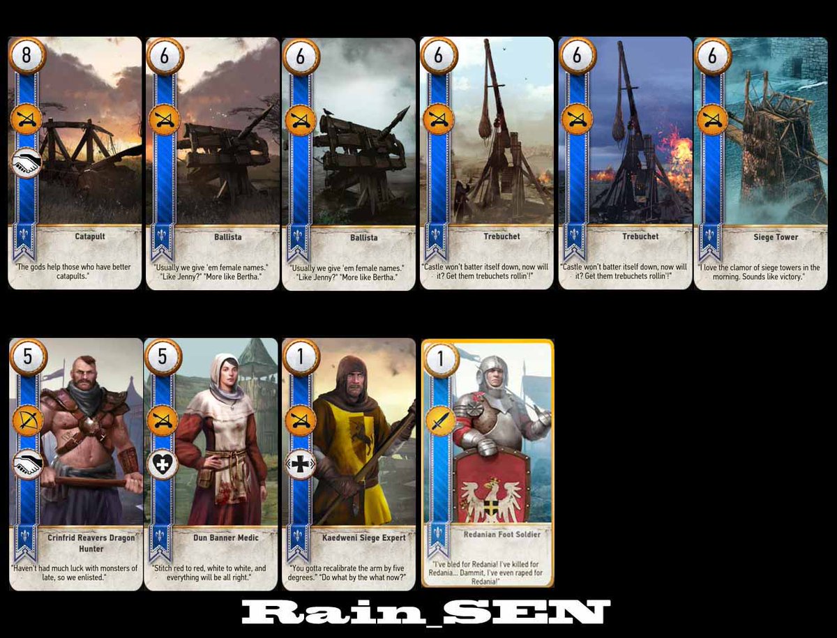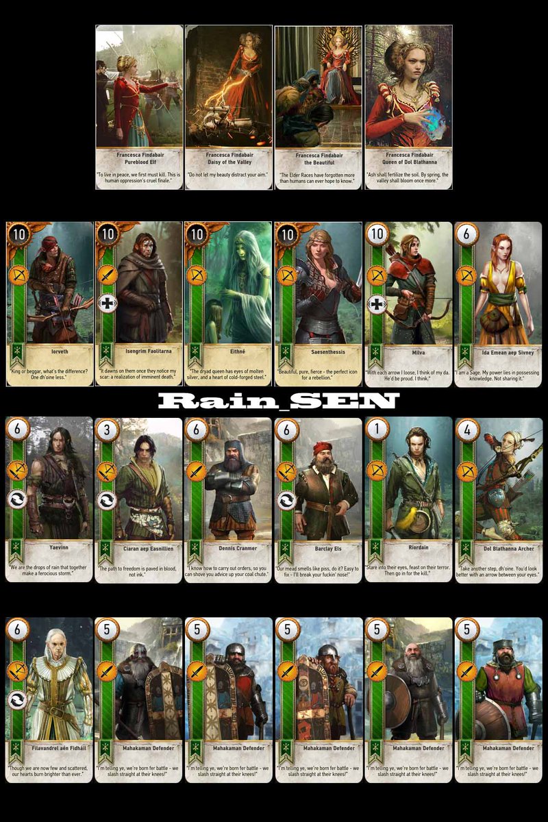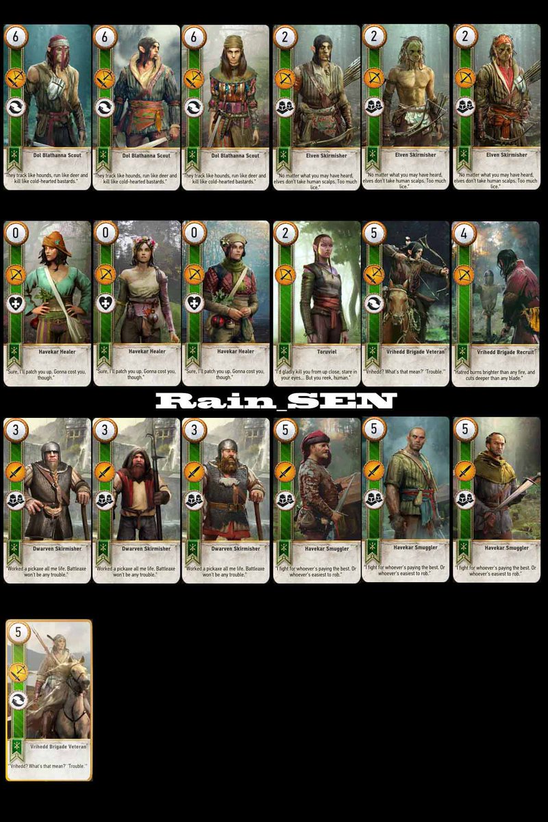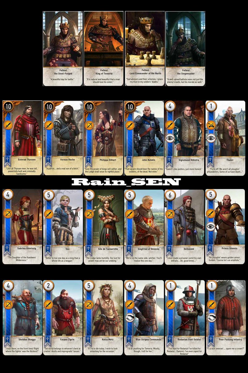รายชื่อการ์ด 10 ที่หาได้เฉพาะในเควสท์ครับ Dandelion, Milva, Vampire: Bruxa จากเควสท์ A Matter of Life and Death John Natalis, Fringilla Vigo, Isengrim Faoiltiarna จากเควสท์ A Dangerous Game The Steel-Forged, The Relentless, Queen of Dol Blathanna, Destoryer of Worlds จากเควสท์ High Stakes